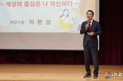 전국연합뉴스 김용태 기자 | 이완섭 서산시장이 20일 해미중학교 학생 180여 명을 대상으로 진로 특강을 진행했다. 이번 특강은 ‘세상의 중심은 나 자신이다’를 주제로 학생들에게 올바른 가치관 형성과 진로 선택에 도움이 될 조언을 전하고자 마련됐다. 이 시장은 “작은 눈덩이가 굴러가 큰 눈사람이 되듯, 작은 꿈이라도 품고 키워가는 과정이 무엇보다 중요하다”라며 “학생들에게 자기 자신을 믿고 가능성에 한계를 두지 말아야 한다”라고 말했다. 또한, 청소년이 빠지기 쉬운 ‘습관의 덫’에서 벗어나기 위해 일상 속 작은 변화를 만드는 행동의 실천이 필요하다고 강조했다. 이어, 긍정적인 사고와 적극적인 행동과 함께 어떤 어려움에서도 포기하지 않고 끝까지 도전하는 자세를 당부했다. 특히, 사회에서 중요하게 여겨질 자세로 ‘5S5품’을 소개했다. 5S는 친절(Smile), 간편(Simple), 유연(soft), 신속(Speed), 깔끔(Smart)을, 5품은 두품(창의), 입품(칭찬), 심품(감성), 손품(소통), 발품(현장)을 뜻한다. 특강이 마무리된 후에는 학생들과 자유롭