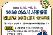 전국연합뉴스 김철환 기자 | 여수시는 시민들의 참신하고 창의적인 의견을 정책에 반영해 ‘시민이 참여하는 시정’을 실현하고자 오는 4월 10일부터 5월 8일까지 ‘2026년 여수시 시정발전 테마형 아이디어 공모전’을 실시한다고 밝혔다. 이번 공모전은 ‘일상에 가치를 더하는 7가지 아이디어’라는 주제로, 시민 생활과 밀접한 현안들에 대한 해결 방안을 발굴하기 위해 마련됐다. 공모 분야는 시민 삶의 질을 높일 수 있는 7개 분야로 ▲나눔문화(자원봉사, 기부 등) 활성화 ▲1회용품 사용감량 ▲불법 옥외광고물 정비 및 활용 ▲자전거 이용 활성화 ▲지역사회 청소년 참여 및 활동 ▲독서문화진흥 및 도서관 특성화 ▲문화접근성 확대 등이다. 여수 시민이라면 누구나 참여할 수 있으며, 접수된 제안은 실시가능성, 창의성, 효과성 등 7개 심사항목에 대한 심의를 거쳐 7월 중 최종 선정된다. 우수 제안자에게는 ▲최우수(40만 원) ▲우수(20만 원) ▲장려(10만 원) 상당의 여수사랑상품권이 지급된다. 참여를 원하는 시민은 여수시 누리집 고시공고에서 제출서류를 확인한 뒤 국민생각함(국민신문고 및 누리집) 또