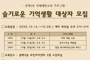 전국연합뉴스 박남호 기자 | 용인특례시 기흥구 동백2동은 10월 14일부터 28일까지 3주간 진행하는 치매 예방 프로그램 ‘슬기로운 기억생활’ 참여자를 모집한다고 22일 밝혔다. 프로그램은 10월 14일 1차 교육인 ‘알쏭달쏭한 치매예방교육’을 시작으로 10월 21일 2차 교육인 ‘보이스피싱 예방법’이 진행된다. 3차 교육은 10월 28일 ‘힐링 레크리에이션(실버체조)’가 이어진다. 교육은 동백2동 지역사회보장협의체의 분야별 전문가 위원들의 재능 기부로 운영되며, 어르신의 인지 기능 증진과 정서적 안정, 삶의 활력 증진을 위해 기획했다. 모집 대상은 지역내 65세 이상 주민 30명이다. 신청 방법은 동 행정복지센터 방문 또는 전화를 통해 선착순 모집한다. 동백2동 관계자는 “이번 프로그램은 어르신들이 건강하고 행복한 생활을 할 수 있도록 지역사회 구성원들이 함께 한다”며 “앞으로도 지역 맞춤형 복지사업을 발굴해 주민 삶의 질 향상에 노력할 것”이라고 말했다.