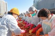 전국연합뉴스 박남호 기자 | 용인특례시는 3일 ‘세리박(Seri Pak) with용인’에서 ‘2025 용인 온(溫)나눔 김장 페스티벌’이 열렸다고 밝혔다. 시민 주도형 자원봉사 프로그램 확산과 지역사회 통합을 목표로 마련된 이 행사는 재단법인 용인시자원봉사센터와 용인시 새마을회, 대한적십자사 용인시지구협의회가 공동으로 주최·주관했다. 행사에는 개인 자원봉사자를 비롯해 ▲용인애향회 ▲상상마을봉사단 ▲유림2동 통장협의회 ▲봉사단체 '이루다' ▲처인드리미봉사단 ▲심리미술봉사단 ▲씨담송 도시농업스쿨 ▲국제표준안전재단 ▲맑은천살리기실천운동본부 ▲녹색어머니회 등 9개 기관이 함께했다. 용인시자원봉사센터가 직접 운영하는 용인특례시 자원봉사대학 봉사단, 2030 청년봉사단과 시 협업기관인 ▲용인시청소년미래재단 ▲용인시산업진흥원 ▲용인시정연구원 관계자도 취약계층의 따뜻한 겨울나기를 위한 온기나눔에 동참했다. 이상일 시장은 여러 곳을 돌며 각 단체 관계자, 봉사자들과 함께 김장김치를 담았고, 시민들의 기념촬영 요청에 일일이 응했다. 이 시장은 작업이 끝난 뒤 인사말에서 “여러분이 오늘 담근 김장김치에는