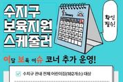 전국연합뉴스 박남호 기자 | 용인특례시 수지구는 보육 정책 등을 알기 쉽게 정리한 ‘보육지원 스케줄러’에 이달 보육 이슈 항목을 신설했다고 15일 밝혔다. 구는 사업별 신청·정산 시기가 달라 신청 오류, 누락 등의 민원이 빈번함에 따라, 이를 해결하기 위해 2025년부터 보육지원 스케줄러를 운영하고 있다. 보육지원 스케줄러는 어린이집과 보육 교사 등을 대상으로 각종 지원 사업의 일정 등을 사전에 공유해 대상자들이 빠짐없이 신청할 수 있도록 돕고자 마련됐다. 구는 매달 신청·정산 지원사업, 제출일, 제출 방법, 주요 변경사항 등을 표로 만들어 보육인 오픈 채팅방과 보육통합정보시스템에 선보이고 있다. 여기에 이달 보육 이슈 항목을 추가해 지역 내 어린이집 182곳을 대상으로 매월 각종 지원사업을 사전에 알리고 변경되는 정책과 최근 이슈, 주요 정보 등을 상세히 제공하기로 했다. 구 관계자는 “보육 교사들의 업무 부담을 덜고, 효율적인 보육 현장을 지원하기 위해 이달 보육 이슈 코너를 마련했으니 유용하게 이용해 주시기를 바란다”고 했다.