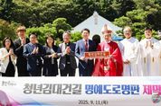 전국연합뉴스 박남호 기자 | 용인특례시는 11일 양지면 은이성지 입구에서 ‘청년김대건길’ 명예도로명판 제막식을 열었다. 이번 제막식은 ‘김대건 신부 은이·골배마실 정주 200주년 현양 개막미사’와 연계해 진행됐다. 행사에는 이상일 시장과 문희종 요한세례자 수원교구 총대리 주교, 시의원, 지역 성직자, 시민 등 200여 명이 참석해 뜻깊은 순간을 함께했다. ‘청년김대건길’은 국도 42호선 남곡2리 입구에서 은이성지까지 약 2.9km 구간에 지정됐으며, 총 3곳에 명예도로명판이 설치됐다. 실제 도로명주소에는 영향을 주지 않는 상징적인 명칭으로, 우리나라 최초 사제 김대건 신부를 기리고 용인의 문화관광 자원을 알리기 위해 마련됐다. 김대건 신부는 1827년 용인으로 이주해 성장했고, 1836년 은이공소에서 세례를 받은 후 마카오·상하이에서 신학을 수학했다. 1845년 사제 서품을 받고 은이·골배마실 일대에서 사목했으며, 1846년 순교했다. 이상일 시장은 기념사를 통해 “은이성지를 중심으로 양방향 2.9km 구간에 역사적으로도 의미가 깊은 ‘청년김대건길’ 명예도로명을 부여하고 현