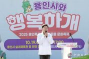 전국연합뉴스 박남호 기자 | 이상일 용인특례시장은 19일 처인구 마평동의 ‘SERI PAK with 용인’ 앞 천연잔디광장에서 열린 ‘2025 용인시와 행복하개’ 축제에 참석해 반려동물 가족과 함께 소통하는 시간을 가졌다. 이번 행사는 반려동물과 시민들이 함께 어울리며 공존할 수 있는 문화를 확산하고, 유기동물 입양을 장려하기 위해 마련됐다. 이날 행사장에는 가족 단위 시민과 반려인 등 5000여 명이 방문해 축제 분위기를 함께 즐겼다. 이상일 시장은 인사말에서 “시는 매년 반려동물과 함께하는 축제를 열며 반려문화 확산과 동물복지 향상을 위해 꾸준히 노력하고 있다”며 “지난해까지 시청 광장에서 열렸던 행사를 올해는 더 좋은 환경에서 시민과 반려동물들이 축제를 즐길 수 있도록 이곳 천연잔디광장으로 옮겨 개최했다”고 말했다. 이 시장은 “용인 시민 110만명 중 25만여 명이 15만 반려동물과 함께하고 있다”며 “앞으로도 반려동물 복지증진과 시민 인식개선을 위한 정책을 지속적으로 추진해 나가겠다. 화창한 가을 날씨 속에서 반려동물과 함께 즐거운 추억 많이 남기시길 바란다”고 했다. 이 시