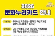 전국연합뉴스 박점규 기자 | 정부 정책에 따라 2026년부터 통합문화이용권(문화누리카드)과 청년문화예술패스 제도가 개편된다. 이에 따라 양주시는 개편 기준에 맞춰 지역대상자를 대상으로 해당 사업을 확대 시행한다고 밝혔다. 통합문화이용권(문화누리카드)은 6세 이상 기초생활수급자와 차상위계층을 대상으로 문화·여행·체육 활동을 지원하는 사업으로, 2026년에는 지원 인원이 16,386명으로 전년 대비 1,687명 증가한다. 또한 1인당 지원 금액도 기존 14만 원에서 15만 원으로 1만 원 인상된다. 특히 청소년(13~18세)과 생애전환기(60~64세) 대상자는 1만 원이 추가 지원돼 총 16만 원을 지원받게 된다. 청년층의 문화 향유 기회를 넓히기 위한 청년문화예술패스도 지원 대상이 확대된다. 2026년 지원 인원은 1,645명으로 전년 대비 727명 증가하며, 지원 연령 역시 기존 19세에서 19~20세로 확대된다. 통합문화이용권(문화누리카드)은 2월 2일부터 누리집 또는 각 읍면동 행정복지센터를 방문해 신청 가능하며, 자세한 사항은 문화누리카드 고객지원센터로 문의하면 된다. 청년문화예술