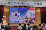 전국연합뉴스 박점규 기자 | 법무부 양주출입국·외국인사무소는 2025. 9. 25. 관내‘경기섬유지원센터 컨벤션홀’에서 양주시 등 경기 북부지역에 거주하고 있는 귀화자 및 국적회복자 57명을 대상으로 국적증서 수여식을 개최했다. 2018. 12. 20. 국적법 개정에 따라 법무부장관 앞에서 하던 국민선서와 국적증서 수여는 귀화자 및 국적회복자 거주 지역별 출입국·외국인관서에서 시행하고 있다 이번 국적증서 수여식은 대한민국 국민이 되어 첫 번째로 맞이하게 될 ‘추석’ 민속명절의 의미를 되새기고, 한국 사회에서 소속감과 자긍심을 가지고 살아갈 수 있도록 격려하고 축하하는 뜻깊은 장이 됐다. 이날 행사는 △대통령 축하영상 시청, △귀화자 등 국민선서 및 국적증서 수여, △기관장 축사, △ 국적취득 대표자의 소감 발표 순으로 진행됐다 김용규 소장은 축사를 통해 쉽지 않은 과정을 거쳐 대한민국 국민으로서 사회 구성원이 된 국적 취득자에게 권리뿐만 아니라 책임과 의무의 막중함을 강조하면서 다양한 문화적 배경과 경험을 바탕으로 서로 간에 이해와 화합을 증진하는데 노력해 주기를 당부했다 또한, 국적증
