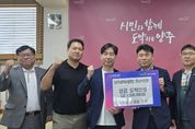 전국연합뉴스 박점규 기자 | 의정부시는 9월 23일 KD운송그룹(대표 허상준)이 다가오는 추석 명절을 맞아 관내 저소득 가구를 위해 온누리상품권을 기탁했다고 밝혔다. 이날 시장실에서 열린 전달식에는 KD운송그룹 우정식 이사와 ㈜평안운수 송진화 노동조합 위원장 등 관계자들이 참석해 1만 원권 온누리상품권 1천 매를 전달하며 따뜻한 나눔에 힘을 보탰다. 우정식 이사는 “운수업계가 안정적으로 자리 잡을 수 있도록 시에서 시내버스 공공관리제를 적극 추진해 주신 덕분에 시민들의 교통 편익과 운수종사자의 근무 여건이 크게 향상됐다”며 “앞으로도 지역사회와 함께하는 기업으로서 나눔 문화 확산에 힘쓰겠다”고 전했다. 김동근 시장은 “매년 명절마다 의정부시의 어려운 이웃들을 잊지 않고 온정을 나눠주셔서 감사드린다”며 “전해주신 마음을 꼭 필요한 곳에 잘 전달하겠다”고 말했다. 한편, KD운송그룹은 2006년부터 매년 명절마다 백미와 온누리상품권 등 후원품을 꾸준히 기부하며 나눔 문화 확산에 앞장서고 있다.