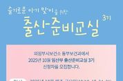 전국연합뉴스 박점규 기자 | 의정부시 보건소 동부보건과는 관내 20~28주 임산부를 대상으로 ‘임산부 출산준비교실’ 프로그램 3기 대상자 20명을 9월 17일부터 선착순 모집한다. 2025년 임산부 출산준비교실은 총 3기로 진행되며, 지난 6월과 8월에 2기수를 성공적으로 마무리하고 마지막 3기수만 남았다. 1기와 2기의 만족도는 5점 만점에 각각 4.9점, 4.6점으로 이론수업과 태교활동의 다양한 프로그램으로 진행돼 산모들의 큰 호응을 얻었다. 이론수업은 국제 모유수유 전문가를 초빙해 ▲출산과정의 이해 ▲신생아 관리 및 간호법 ▲모유수유 과정 및 방법에 대한 교육으로 진행하며, 공동 육아에 대한 이해를 높이고자 배우자 동반 참여가 가능하다. 태교활동은 산모의 정서적 안정감과 태어날 아기에 대한 기대감을 높이는 ▲태명 턱받이 아기용품 만들기 ▲아로마테라피를 활용한 나만의 디퓨저 만들기로 진행될 예정이다. 임산부 출산준비교실은 동부보건과 다목적실에서 10월 10일부터 31일까지 매주 금요일 2~4시, 총 4회로 진행된다.