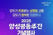 전국연합뉴스 박점규 기자 | 의정부시는 (사)경기도여성단체협의회 의정부시지회가 9월 5일 오전 9시 30분부터 의정부예술의전당 소극장에서 200여 명의 시민들과 함께 2025년 양성평등주간 기념식을 개최한다고 밝혔다. 양성평등주간(매년 9월 1일~7일)을 기념하기 위한 이번 행사에서는 ‘모두가 존중받는 성평등 사회, 모두가 행복한 의정부시’라는 슬로건과 함께 양성평등 실천 의지를 다지는 시간을 가진다. 여성단체 ‘사랑의 하모니 봉사단’의 앙상블 공연과 의정부시 홍보대사 비니쌤의 축하공연을 시작으로 ▲여성의 인권보호 및 권익증진 부문 ▲양성평등 문화 확산 부문 ▲양성평등 발전에 기여한 기업인 부문에 대한 양성평등 유공자 시상식을 진행한다. 특히 1부 마지막 순서인 양성평등 퍼포먼스에서는 참석자들이 ▲모두가 존중받는 성평등 사회 ▲모두가 행복한 의정부시 ▲내 삶을 바꾸는 도시, 의정부를 외치는 카드섹션을 펼치며 양성평등의 의미를 되새긴다. 2부는 ‘양성평등 사회를 말하다’ 라는 주제로 박준영 변호사가 양성평등토크쇼를 진행한다. 김동근 시장은 “양성평등주간 기념행사는 우리 사회 구성원 모두가