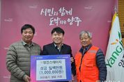 전국연합뉴스 박점규 기자 | ㈜영진스테이지는 지난 27일 양주시 남면행정복지센터를 방문해 지역 내 어려운 이웃을 위한 이웃돕기 성금 100만 원을 전달했다. 남면 상수리에 위치한 ㈜영진스테이지는 특수조명·무대기계장치·호텔 연회장 설비 등 무대기술 분야 전문기업이다. 이날 기부식에는 김동현 ㈜영진스테이지 대표, 백운구 남면장, 김영권 남면 지역사회보장협의체 공동위원장이 참석해 따뜻한 나눔의 의미를 함께 했다. 기부금은 사회복지공동모금회를 통해 남면 관내 취약계층을 위해 사용될 예정이다. 김동현 대표는 “지역에서 받은 사랑을 다시 지역에 돌려드리고 싶었다”며 “작은 도움이지만 어려운 이웃들에게 힘이 되기를 바란다”고 전했다. 백운구 남면장은 “지역 기업의 따뜻한 참여가 큰 힘이 된다”며 “소중한 성금이 꼭 필요한 분들께 전달되도록 최선을 다하겠다”고 말했다. 김영권 공동위원장 역시 “협의체는 민관이 함께 복지 사각지대를 살피고 지원하는 역할을 하고 있다”며 “이런 뜻깊은 나눔이 더 많은 이웃들에게 희망이 되기를 기대한다”고 전했다. 남면은 앞으로도 지역 기업 및 단체와의 협력을 통해 지속적