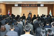 전국연합뉴스 이동수 기자 | 음성군은 2일 군청 대회의실에서 직원 150여 명이 참석한 가운데 시무식을 열고 2026년 새로운 발전과 도약을 다짐했다. 이날 조병옥 군수는 신년사를 통해 2025년 한 해를 군민 여러분과 함께 위기를 극복하고 ‘2030 음성시 건설’을 위한 기틀을 착실히 다진 한 해라며 군민과 공직자들에게 고마움을 전했다. 또 올해 역점 정책 추진 방향으로 △지역경제 회복을 넘어 경제도약 발판 마련 △청년을 비롯해 인구가 유입되는 탄탄한 도시기반 조성 △따뜻한 복지 강화와 기본이 튼튼한 사회 구현 △품격 있는 교육·문화·관광도시 조성 △농업 경쟁력 강화로 행복한 농업·농촌 구현 △군민이 안심하는 안전하고 쾌적한 도시 조성 △성공적인 도민체전 개최와 생활체육 인프라 확충을 제시했다. 조 군수는 직원들에게도 “군민에게 신뢰받는 군정이 되도록 투명·공정·정의로운 행정을 펼쳐 달라”고 당부했다. 또 “2026년에도 도시 경쟁력을 키우고 ‘더 큰 음성’을 향한 지속 가능한 성장 동력을 탄탄히 만들어 가겠다”면서 “병오년 새해 힘차게 대지를 달리는 적토마처럼 음성군이 더 높이 도약할 수 있도록