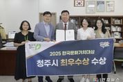전국연합뉴스 이동수 기자 | 청주시는 문화체육관광부 허가 사단법인 한국문화가치연구협회가 주관한 ‘2025년 한국문화가치대상’에서 최우수상을 수상했다고 16일 밝혔다. 올해 6회째를 맞는 한국문화가치대상은 전국 지방자치단체와 지역 문화재단을 대상으로 특색있는 문화·예술 정책과 사업 등을 평가해 지역민의 문화 향유 기회를 확대하고 대한민국의 문화가치 경쟁력을 향상한 단체에 주어지는 상이다. 이번 평가에서 청주시는 △문화·예술로 채워지는 원도심 활성화 사업(원도심 문화예술공간지원사업, 원도심 골목길 축제, 청소년 주말 버스킹 등) △동부창고 운영사업(동부창고 페스타, 주말 예술 교육, 생활문화 프로그램 운영 등) △청주 문화도시 조성사업(동네 기록관 운영, 시민 아카이브, 메이드인 청주 등) 등 다양한 문화정책을 추진해 시민들의 문화 향유 기회를 확대했다는 평가를 받았다. 이범석 청주시장은 “시민들과 소상공인, 예술인들이 함께 참여하고 주도해 나가며 지역 특색을 살린 다양한 문화 콘텐츠를 발굴하기 위해 노력하고 있다”며 “앞으로도 문화를 통해 시민들의 삶의 질을 높일 수 있도록 노력하겠다”고 말했다.