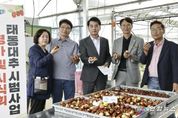 전국연합뉴스 이동수 기자 | 보은군농업기술센터는 10일 수한면 일원에서 ‘태동대추 시범사업 평가 및 시식회’를 성황리에 개최했다고 밝혔다. 이번 행사는 보은군이 올해 처음으로 추진한 신품종 ‘태동대추’ 재배 시범사업의 성과를 점검하고, 현장에서 수확된 생과를 직접 시식하며 품질과 시장성을 평가하기 위해 마련됐다. 이날 행사에는 최재형 보은군수를 비롯해 농업 관계자와 재배농가, 지역 주민 등 100여 명이 참석해 높은 관심을 보였다. 보은군농업기술센터는 올해 총 1억 8000만 원의 예산을 투입해 △4,112㎡ 규모의 묘목 재배 시설하우스와 △3.6ha 규모의 농가 실증포장(18개소, 묘목 3,600주)을 조성, 신품종 대추의 안정적인 재배 기반을 마련했다. ‘태동대추’는 보은읍 삼산리 윤태동 농가가 개발한 신품종으로, 기존 복조 품종(과중 18.5g, 당도 27.6Brix)에 비해 과중 27.47g, 당도 30.5Brix로 크기와 당도가 월등히 높고, 식감 또한 아삭하고 단단해 차별성이 뚜렷하다. 이날 시식회에 참석자들은 "아삭하고 달다", "프리미엄 생과로 유통 가능성 높다"며 호평을 쏟아냈으며,