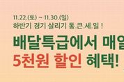 전국연합뉴스 조민준 기자 | 경기도 공공배달앱 배달특급이 2025년 하반기 경기살리기 ‘통 큰 세일’에 합류한다. 경기도주식회사는 오는 30일 일요일까지 배달특급 전체 회원을 대상으로 배달특급 입점 가맹점에서 사용할 수 있는 5천원 할인 쿠폰을 제공한다고 23일 밝혔다. 해당 프로모션은 배달특급 애플리케이션 내 상반 ‘통 큰 세일’ 배너를 통해 쿠폰을 내려받아 결제 단계에서 사용할 수 있다. 예산 소진 시까지 회원당 매일 1회 내려받아 사용 가능하다. 배달특급은 지난 상반기에도 경기도와 경기도시장상권진흥원이 추진한 ‘2025년 상반기 경기 살리기 통 큰 세일’에 참여한 바 있다. 당시 배달특급은 경기도 지역화폐가 연동되는 공공배달앱 3사(배달특급, 땡겨요, 먹깨비) 가운데 가장 먼저 할인 쿠폰을 소진시켰고, 가장 많은 30억 원의 거래액을 기록하며 소비자와 소상공인의 상생을 이끌어 낸 바 있다. 한편, 배달특급의 모든 이벤트는 해당 상단 배너 기능을 통해 확인 가능하며, 지역에 따라 할인 조건과 금액이 달라질 수 있어 사전 확인이 필요하다.