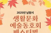 전국연합뉴스 최성용 기자 | 남원시가 후원하는 2025 남원시 생활문화예술동호회 페스티벌이 9월 28일에 남원 사랑의 광장에서 개최한다. 이 행사는 (사)남원시 생활문화예술동호회 네트워크에서 주관하는 축제로, 지역 예술인 및 생활 문화예술 동호인 500여 명과 남원 시민이 함께하는 남원의 생활 문화예술 축제이다. 오후 1시부터 오후 6시까지 남원 사랑의 광장 일원에서 진행되는 이번 축제는 18개 동호회의 음악·무용·농악 등 다양한 무대 공연이 펼쳐지고, 나만의 예술적 감각을 담은 생활용품을 제작해 볼 수 있는 전시 및 체험 부스가 마련됐다. 이기영 생활문화예술동호회 네트워크 이사장은 “이번 축제를 통해 남원 시민들이 함께 즐길 수 있는 다양한 프로그램이 마련됐다.”라며, “앞으로의 활동으로 시민 여러분이 즐거운 문화예술 활동에 참여할 수 있도록 노력하겠다.”라고 밝혔다. 최경식 남원시장은 “이번 행사를 통해 생활 문화예술인의 자긍심을 높이고, 시민 여러분이 생활 문화예술을 접할 수 있는 장이 될 것이다.”라며, “시민의 화합과 생활 문화예술 발전의 계기가 될 것이다.”라고 말했다.