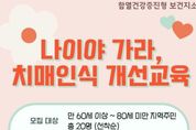 전국연합뉴스 최성용 기자 | 익산시가 북부권 어르신을 대상으로 치매 예방과 조기 발견의 중요성을 알리는 프로그램을 운영한다. 익산시 함열건강증진형 보건지소는 6일부터 10일까지 '나이야 가라, 치매 인식개선 교육' 참여자 20명을 모집한다. 이번 프로그램은 치매 인식개선 교육과 인지자극 체험 등을 익산시 치매안심센터 전문 인력이 진행한다. 이를 통해 참여자들이 치매 예방에 필요한 정보를 쉽고 재미있게 익힐 수 있도록 돕는다. 참여 대상은 함열읍, 함라면, 성당면, 용안면, 낭산면, 망성면, 용동면에 거주하는 만60~79세 주민이며, 모집 인원은 선착순 20명이다. 신청은 함열건강증진형 보건지소에 방문하거나 전화로 하면 된다. 이진윤 보건소장은 "치매는 조기 발견과 예방이 중요한 만큼, 이번 교육을 통해 어르신들이 치매에 대한 올바른 정보를 습득하고 건강한 노후를 준비하는 계기가 되길 바란다"며 "많은 관심과 참여를 부탁드린다"고 전했다.