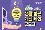 전국연합뉴스 기자 | 용인특례시 기흥구는 오는 6일부터 5월 4일까지 ‘2026 기흥구 생활불편개선 제안 공모전’을 개최한다. 이번 공모전은 일상에서 시민이 직접 체감하는 불편사항을 발굴하고, 이를 개선할 수 있는 다양한 방안을 모색하고자 마련됐다. 주제는 일상생활에서 체감하는 생활 불편 개선 아이디어다. 시설·환경 등 각종 생활 불편 사항이나 비효율적인 행정이나 규제 등 다양한 분야의 의견을 받는다. 생활 불편에 관심 있는 누구나 참여할 수 있다. 시 누리집 ‘용인소식’의 ‘고시공고’ 또는 기흥구 누리집 ‘참여광장’의 ‘기흥소식’에서 서식을 내려받아 작성하면 된다. 작성한 제안은 방문‧우편(기흥구 관곡로 95 기흥구청 별관 2층 자치행정과 기획감사팀)으로 내면 된다. 전자우편으로도 제출할 수 있다. 부서 검토와 제안공모심사위원회 검토를 거쳐 최종 선정된 제안은 시상금(최대 100만 원)이 지급된다. 또 관련 부서 검토 등을 거쳐 행정에 반영하거나 실효성 있는 정책으로 이어질 수 있도록 추진할 방침이다. 자세한 사항은 시 또는 구 누리집에서 확인할