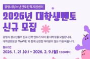 전국연합뉴스 조민준 기자 | 광명시청소년재단 청소년진로진학지원센터는 관내 중·고등학교 청소년 대상 학과 멘토링 운영을 위해 ‘2026년 대학생 멘토단(wave)’을 모집한다고 밝혔다. 대학생 멘토단(wave)은 대학생 멘토가 전공 및 진로 경험을 바탕으로 청소년에게 학과 정보, 전공 이해, 진학 준비 방향 등을 제공하는 프로그램으로, 학교 현장과 연계한 멘토링 활동을 통해 청소년의 진로·진학 역량 강화를 지원한다. 모집 대상은 4년제 대학교 재학생·휴학생 또는 대학원 재학생·휴학생(2026학년도 입학 예정자 포함)으로, 1년 이상 활동 가능한 대학생이면 지원할 수 있다. 선발된 멘토에게는 역량강화 교육이 제공되며, 멘토링 활동 참여 시 소정의 활동비 지급 또는 봉사시간 인정 등 참여 혜택이 지원된다. 신청은 2026년 2월 9일 12:00까지 구글폼을 통해 가능하며, 자세한 사항은 광명시청소년진로진학지원센터 홈페이지 내 모집 공고문을 통해 확인할 수 있다. 광명시청소년진로진학지원센터 박사라 센터장은 “이번 멘토단 운영을 통해 청소년에게는 실질적인 진학 정보와 멘토링 기회를 제공하고, 대학생에게는 지