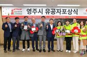 전국연합뉴스 김삿갓 기자 | 영주시는 지난 7일 시청 제2회의실에서 ‘경북사랑의열매 유공자 포상식’을 개최했다. 이번 행사는 경북사회복지공동모금회(사무처장 손병일)와 함께 나눔문화 확산에 기여한 유공자들을 격려하고, 지역사회 나눔활동을 더욱 활성화하기 위해 마련됐다. 이날 포상식에서 가흥2동 김기원 씨가 경상북도지사 표창을 받았으며, 경북사회복지공동모금회장상은 △영주시사랑의열매나눔봉사단 강점숙·황윤정 씨 △태웅관리 조욱래 대표 △한국도로공사 영주지사에 각각 수여됐다. 또한 ‘착한가게’ 운동 10주년을 맞은 온누리푸드 박찬정 대표에게는 기념 현판과 감사장이 전달됐다. ‘착한가게 운동’은 영주지역 자영업자들이 매월 일정 금액(3만 원 이상)을 기부해 지역 내 복지사각지대를 돕는 대표적인 나눔 캠페인으로, 지역 상인들의 자발적인 참여가 꾸준히 이어지고 있다. 영주시는 지난해 9억 1,800만 원의 성금을 모금해 목표액(8억 2,300만 원)을 초과 달성, 111.6%의 실적을 거두었다. 이는 지역 주민들의 높은 참여와 이웃사랑 실천이 만들어낸 의미 있는 성과로 평가된다. 손병일