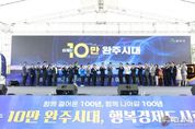 전국연합뉴스 최성용 기자 | 완주군이 정읍시와 어깨를 나란히 하며 전북 4대 도시권으로 자리매김하고 있다. 6일 완주군에 따르면 10월 말 기준 완주군의 주민등록 인구(내국인)는 10만 490명으로 전월보다 114명 증가하여, 36개월 연속 인구 증가세를 이어가며 지속적인 순유입을 기록 중이다. 이는 군 단위 지역 중에서도 3년 이상 연속 인구 상승세를 유지한 사례로 지방소멸 위기 속에서도 성장 기반을 다진 의미 있는 성과다. 이미 완주군은 9월 말 기준으로 외국인 포함 인구가 10만 5,250명으로, 같은 기간 정읍시를 근소한 차이로 앞질렀다. 10월 말 기준 내국인 기준으로는 정읍시(10만 740명)가 소폭 많지만, 완주군은 지속적인 인구 순유입과 성장세로 도내 도시권 구조를 재편하고 있다. 이는 유희태 군수가 민선 8기 출범 이후 일관되게 추진해 온 기업유치 확대와 정주여건 개선, 맞춤형 인구정책 등을 통해 ‘전북 4대 도시 도약’ 비전이 현실화되고 있음을 보여주는 성과로 평가된다. 완주군은 올해 5월 10만 명 인구 달성 이후 6개월 연속 증가세를 이어가고 있으며,