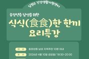전국연합뉴스 유근택 기자 | 남원주건강생활지원센터는 영양 교육 및 건강 요리 실습 기회가 적은 중장년 남성을 위한 ‘식식(食食)한 한끼’ 프로그램 참여자를 모집한다. 이번 요리특강은 대사증후군 예방·관리 영양 교육과 건강 요리 실습으로 구성된다. 특강은 오는 4월 10일 열리며, 평일 낮 시간대 참여가 어려운 대상자들을 위해 저녁 시간대인 오후 6시 30분부터 8시까지 진행된다. 모집 대상은 중장년층 남성 지역 주민 10명 이내며, 3월 30일 오전 9시부터 선착순으로 모집한다. 참가 신청 등 자세한 사항은 남원주건강생활지원센터로 문의하면 된다.