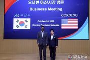 전국연합뉴스 김용태 기자 | 아산시는 24일 글로벌 첨단 유리소재 선도기업인 코닝정밀소재㈜를 방문해 임직원들과 간담회를 갖고 지역경제 활성화와 상생협력 방안을 논의했다고 밝혔다. 이번 방문은 코닝정밀소재의 생산 현장을 직접 둘러보고, 최근 디스플레이 산업의 기술 변화와 기업 애로사항을 청취하며 지역 산업 생태계와 연계한 협력 방안 및 지역경제 회복 방향을 모색하기 위해 마련됐다. 간담회에는 오세현 시장을 비롯해 이재성 기획경제국장 등 시 관계자와 반 홀(Vaughn M. Hall Jr.) 코닝정밀소재 대표이사와 임원진 등 20여 명이 참석했다. 양측은 △코닝의 첨단 건축용 유리제품 공공건축물 적용 △아산시 관내 기업 이용 및 청년 현장견학 프로그램 운영 △아산페이 더블혜택 이벤트 홍보 △지역 농산물 이용 등 다양한 상생 협력 과제에 대해 의견을 교환했다. 이 자리에서 오 시장은 “디스플레이 산업은 초고해상도, 대형화, 폴더블 등 기술 패러다임이 빠르게 전환되고 있으며, 그 중심에 코닝의 초박막‧고기능성 유리 기술이 있다”고 평가했다. 특히 “코닝정밀소재는 아산의 미래산업을 함께 설계하는