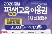 전국연합뉴스 김용태 기자 | 홍성군은 취약계층 등 성인의 평생학습 기회 보장을 위해 오는 30일부터 ‘충남 평생교육이용권’ 신청을 받는다고 밝혔다. 신청대상은 주민등록 기준 홍성군 내 주소를 둔 19세 이상 성인 중 ▲기초생활수급자 ▲차상위계층 ▲등록장애인 ▲65세 이상 노인이다. 1인당 연 35만원을 지원하며, 평생교육강좌 수강료, 교재비·재료비를 지원한다. 신청기간은 3월 30일부터 4월 17일까지이며, 신청방법으로는 ▲저소득층 및 일반은 평생교육이용권 누리집에서 온라인 신청 ▲장애인은 보조금24 누리집 온라인 신청 가능하다. 홍성군장애인종합복지관에서 현장 신청도 가능하며, 자세한 문의는 (충남 평생교육이용권 상담센터)로 하면 된다. 유희전 자치행정과장은 “평생교육이용권 지원사업은 2024년부터 시작해 3년째 지원하게 되어 매우 뜻깊게 생각한다”며, “앞으로도 평생교육에 소외되는 군민들이 없도록 더 많은 지원을 위해 노력하겠다”라고 말했다. 한편 평생교육 이용권은 평생교육이용권 사용기관으로 등록된 기관에서만 사용이 가능하며, 평생교육이용권 누리집에서 확인 가능하다. 다만 30세이상 성인은 AI·