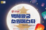 전국연합뉴스 최성용 기자 | 추석 전날 밤, 익산 백제왕궁이 시민들의 소망을 담은 소원등으로 환히 빛난다. 익산시는 추석 전날인 오는 10월 5일에 유네스코 세계유산 백제왕궁(왕궁리 유적)에서 '한가위 백제왕궁 소원페스타 : 천년의 소원을 담다'를 개최한다고 25일 밝혔다. 참여는 사전 예약과 현장 접수 모두 가능하다. 사전 예약은 오는 29일 오전 10시부터 마수리늘배움협회 누리집을 통해 선착순 800명을 접수하고, 현장에서도 200명을 선착순으로 모집한다. 이번 축제는 시민들이 직접 적은 소원문을 '소원등'에 달아 백제왕궁 밤하늘을 밝히며, 가족과 이웃이 함께 소망을 나누는 특별한 시간으로 꾸며진다. 소원등은 근심을 내려놓고 평안과 희망을 기원하는 상징으로 달맞이, 연등 문화 등의 풍속과 맞닿아 있다. 이에 가족의 안녕을 기원하고 풍요에 감사하는 추석의 의미를 한층 깊게 할 것으로 기대를 모은다. 행사는 오후 5시 소원문 쓰기로 시작된다. 이어 △백제의 마술사 공연 △버블쇼 △사물놀이패와 어우러지는 백제왕궁마을장터 재담마당극 등 다채로운 무대가