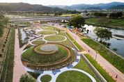 전국연합뉴스 김철환 기자 | ‘가을 여행 명소’ 장성군에 조성된 황룡강 주제정원이 새로운 ‘핫 플레이스’로 부상 중이다. 장성군은 2023년부터 ‘지방정원 조성공사’를 통해 총 6개의 주제정원을 황룡강 일원에 만들고 있다. 전통적인 오방색에서 착안해 주제 색을 정하고 구간별로 △황룡정원(황) △홍담정원(적) △청백리정원(백) △푸른물빛정원(청) △검은숲정원(흑)을 조성 중이다. 여기에 지난 5월 ‘전라남도 정원 페스티벌’ 때 조성된 작가정원·초청정원·시민참여정원을 보존한 ‘참여정원’이 더해졌다. 가장 많은 발길이 모여드는 곳은 ‘황룡정원’이다. 옛 공설운동장 부지에 장성 잔디를 심고, 강변 쪽에는 음악 분수와 상설 무대를 설치했다. 무대를 바라보며 앉을 수 있도록 부채꼴 모양으로 계단을 만들고, 단차를 둬 공연을 관람하는 데 불편이 없도록 했다. 정원 외곽을 포근하게 감싸는 소나무와 은목서가 경관의 완성도를 높인다. 황룡강을 대표하는 정원으로, 매년 봄·가을 축제 주무대가 마련되는 장소다. ‘황룡정원’이 방문객들로 사랑받는 이유는 ‘자유