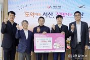 전국연합뉴스 김용태 기자 | 충남 서산시는 지난 6일 한국농어촌공사 서산·태안지사가 고향사랑기부금 300만 원을 기탁했다고 밝혔다. 시는 이날 시청 시장실에서 이완섭 서산시장, 김학배 한국농어촌공사 서산·태안지사장 등이 참석한 가운데 기탁식을 개최했다. 전달된 기부금은 서산시에 주소를 두고 있지 않은 한국농어촌공사 서산·태안지사 직원들의 자발적인 참여로 마련됐다. 김학배 한국농어촌공사 서산·태안지사장은 “직원들이 자발적으로 뜻을 모은 기부라 더욱 의미가 깊다”라며 “농어촌공사는 지역 주민과 함께 성장하고 상생하는 기관으로서 앞으로도 지역사랑 실천에 앞장서겠다”라고 말했다. 이완섭 서산시장은 “지역과 공공기관이 함께 만들어가는 고향사랑기부제가 더욱 확산하길 바란다”라며 “이번 기탁은 지역사회 발전에 함께하는 모범 사례가 될 것”이라고 밝혔다. 한편, 고향사랑기부제는 기부자의 주소지를 제외한 지방자치단체에 기부하면 세액공제와 답례품 등의 혜택을 제공하는 제도다. 모금된 기부금은 취약계층 지원과 지역공동체 활성화, 주민 복리 증진 등에 활용된다. 시는 지난 3월 서산