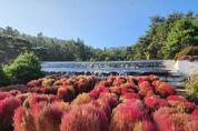 전국연합뉴스 조민준 기자 | 주변 섬들의 이름과 지명을 알 수 있는 전경 안내판이 설치된 전망대에 올라서면 시원한 가을 바닷바람을 맞으며 서해안을 볼 수 있고, 다양한 가을꽃이 만개한 곳! 바로 경기도 안산 대부도 인근에 소재한 바다향기수목원이다. 추석연휴 기간을 맞아 자연의 싱그러운 녹음을 전해주고 있는 바다향기수목원에는 수목원 내 식재된 다양한 가을꽃과 함께 890개 국화 화분이 일제히 개화를 하고, 목화 1,200본과 붉게 단풍이 든 댑싸리 500개, 다양한 색상의 웨이브페츄니아와 로즈마리 1,100본이 가을의 색과 향기를 전하고 있다. 또한 ‘바다향기수목원 사용설명서’, ‘자연 속 숨은 보물찾기’, ‘속속들이 소나무’, ‘흙은 재미있는 우리 친구’ 등 다양한 숲 해설 프로그램이 가을철 수목원을 찾는 가족 단위 방문객들을 맞이하고 있으며, 연중 토요일과 일요일에 신청을 받아 운영되고 있는 ‘향나무 목걸이 만들기’, ‘불어라 피리’ 등의 체험프로그램 또한 관람객을 위해 준비되고 있다. 더욱이 수목원 내 염생식물원에 있는 ‘바다향기전시관’을 지역사회와 예술가를 위한 기획전시실로 개방해 10월 3일부터 12일까