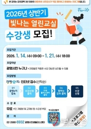 전국연합뉴스 조민준 기자 | 광명시 인생플러스센터는 오는 14일부터 21일까지 시민이 기획하고 운영하는 ‘2026년 상반기 빛나는 열린교실’의 수강생 230명을 모집한다. ‘빛나는 열린교실’은 강의 경력 3년 이하의 신중년 시민강사들이 자신의 재능과 전문성을 바탕으로 강의를 직접 기획하고 이끄는 시민 주도형 열린 강좌 프로그램이다. 이번 상반기에는 변화하는 트렌드와 시민의 관심을 반영해 총 14개 강좌를 개설했다. 주요 교육 과정은 ▲인공지능(AI)으로 나만의 커스텀 다이어리 만들기 ▲명리학으로 풀어보는 인생 사용법 ▲1인 출판사 만들어보기 ▲내 손안의 인공지능(AI) 건강비서 ▲아로마 향기로 리셋 미(Me) 등으로 구성했다. 교육은 1월 27일부터 2월 27일까지 과정별 일정에 따라 광명시인생플러스센터에서 운영한다. 광명시민이라면 누구나 신청할 수 있으며, 수강료는 무료다. 다만 일부 과정은 실습을 위한 재료비가 별도로 발생할 수 있다. 수강 신청은 광명시 평생학습 통합플랫폼(sugang.gm.go.kr)에서 선착순으로 접수하며, 공정한 학습 기회를 위해 1인당 최대 2개