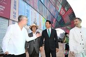전국연합뉴스 김재업 기자 | 오세훈 서울시장은 26일 오후 6시 30분 열린송현 녹지광장(종로구 송현동)에서 진행된 '제5회 서울도시건축비엔날레' 개막식에 참석해 54일간 서울 도심을 장식할 글로벌 건축 축제의 시작을 알렸다. '서울비엔날레는’ 세계 도시가 함께 도시문제 해법을 고민하고 사람을 위한 건축문화를 교류하는 국내 최초 도시건축 분야 국제행사로 11월 18일까지 열린송현 녹지광장과 서울도시건축전시관 등에서 ‘매력 도시, 사람을 위한 건축’을 주제로 개최되며 이번 전시는 영국 출신 세계적 디자이너 토마스 헤더윅이 총감독을 맡았다. 이날 개막식에는 오세훈 서울시장과 토마스 헤더윅 총감독을 비롯해 마옌송, 스테판 웹스터 등 국내외 유명 건축가와 주한 외교사절, 시민 등 500여 명이 참석했다. 개막식에 앞서 오 시장은 토마스 헤더윅 총감독과 함께 서울도시건축전시관과 광화문광장을 차례로 방문해 전시 작품들을 둘러봤다. 이어 열린송현 녹지광장으로 이동해 철골과 스틸패널로 만든 대형조형물 ‘휴머나이즈 월(Humanise Wall)’과 ‘일상의 벽(Walls of Public Life)’을 차례로 관람했다. &nb