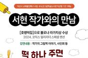 전국연합뉴스 최성용 기자 | 익산시가 어린이들과 그림책의 상상력을 나누는 자리를 마련한다. 익산시는 수도산그림책숲도서관에서 오는 11월 15일 교육발전특구사업의 일환으로 '서현 작가와의 만남' 강연 프로그램을 운영한다고 31일 밝혔다. 수도산그림책숲도서관은 그림책 특화도서관으로, 상반기에는 '이파라파냐무냐무'로 볼로냐 라가치상을 수상한 이지은 작가와 '김밥의 탄생'의 신유미 작가를 초청해 강연회를 진행한 바 있다. 이번에 독자들과 만나는 서현 작가는 눈물바다, 간질간질, 호라이 등 다수의 인기 그림책을 집필했다. 특히 '호랭떡집'으로 '2024 볼로냐 라가치 얼리리더 스페셜 멘션'을 수상했다. 서 작가는 활발한 강연과 전시 활동을 이어가고 있으며, 이번 익산 강연에서는 자신의 작품 세계와 창작 과정에 대해 이야기하고 사인회를 통해 독자들과 소통할 예정이다. 참여 신청은 11월 5일 오전 10시부터 익산시 통합도서관 누리집을 통해 가능하며, 가족 15팀을 선착순 모집한다. 자세한 문의는 수도산그림책숲도서관으로 하면 된다. 익산시 관계자는 "어린이들이