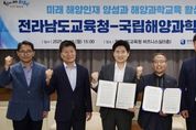 전국연합뉴스 기자 | 전라남도교육청과 국립해양과학관은 15일 전남교육청에서 ‘미래 해양 인재 양성 및 해양 과학교육 활성화’를 위한 업무협약을 체결했다. 이번 협약은 해양 소양 증진과 교육 프로그램 개발로 지역 학생들에게 해양과학 진로 탐색 기회를 제공하고, 미래 해양 전문 인력을 육성하기 위해 추진됐다. 양 기관은 협약에 따라 ▲ 해양과학 관련 교육프로그램 개발 ▲ 교원 연수 ▲ 현장체험학습 연계 운영을 비롯한 인적자원 교류 및 네트워크 구축 등 다양한 협력사업을 추진할 계획이다. 특히, 학생들에게 독도교육과 동해안 중심의 해양 교육으로 진로 탐색의 기회를 넓히고, 내실 있는 해양과학교육을 운영할 방침이다. 전남교육청은 이번 협약을 계기로 미래 교육역량 강화를 위한 협력 체제 및 지속 가능한 지원 기반을 구축할 수 있을 것으로 기대하고 있다. 김대중 교육감은 “전남은 우리나라의 대표적인 해양 지역으로, 해양 교육은 지역과 미래를 동시에 준비하는 길”이라며 “국립해양과학관과의 협력을 통해 전남 학생들이 글로벌 해양 인재로 성장할 수 있도록 적극 지원하겠다”고 말했다.