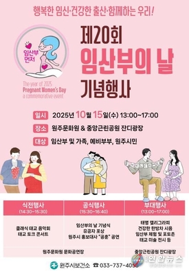 원주시보건소, 오는 15일 '임산부의 날 기념행사' 개최