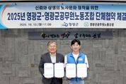 전국연합뉴스 김철환 기자 | 영광군은 지난 10월 13일 군청 2층 소회의실에서 영광군공무원노동조합과 “2025년 단체협약식”을 체결했다. 이번 협약은 공무원 노사 간의 상호 존중과 협력을 바탕으로 △근로시간 면제제도 도입 △적정 인력 관리방안 마련 △기념일 특별휴가 확대 △장례용품 지원 △임산부 및 영유아 자녀를 둔 공무원의 근무환경 보호 등 실질적인 개선안을 담고 있으며, 건전한 노사관계 정립과 협력적 공직문화 조성을 목표로 추진됐다. 영광군은 지난 3개월간 실무교섭과 지속적인 협의를 통해 노사 간 의견을 조율해 왔으며, 이번 단체협약을 통해 공무원의 사기 진작과 일·가정 양립을 위한 유연한 조직 문화 조성에 중점을 두었다고 밝혔다. 영광군수 는 “이번 단체협약은 군정의 동반자로서 노동조합의 의견을 존중하고, 공무원들이 자긍심을 갖고 일할 수 있는 조직문화를 만드는 중요한 계기가 될 것”이라며 “노사가 함께 협력하여 군민에게 신뢰받는 행정을 실현하겠다”라고 말했다. 박종옥 위원장은 “공무원노조는 조합원의 권익 보호는 물론, 군정 발전과 조직문화 개선을 함께 이끌어가는 든든한 파트너가 될 것이며,