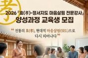 전국연합뉴스 김삿갓 기자 | 재단법인 영주한국효문화진흥원은 효(孝) 문화의 전문적인 확산을 위해 4월 3일부터 5월 1일까지 ‘효(孝)-정서지도 마음살핌 전문강사’ 양성과정 교육생을 모집한다. 이번 교육과정은 현대사회에서 요구되는 정서지도와 인성교육을 기반으로, 효(孝) 가치를 실천적으로 전달할 수 있는 전문강사를 양성하기 위해 마련됐다. 특히 이론과 실습을 병행한 교육을 통해 현장 적용 능력을 갖춘 인재 양성에 중점을 두고 있다. 교육은 5월부터 10월까지 6개월간 매주 화·목요일 운영되며, 총 84시간의 이론교육과 2회의 현장실습으로 구성된다. 모집 인원은 25명으로, 평생교육사, 교사, 활동가 등 효문화 전파와 인성교육에 관심과 열정을 가진 시민이라면 누구나 신청할 수 있다. 교육 신청은 영주한국효문화진흥원 홈페이지에 게시된 신청서를 작성한 후 방문 또는 이메일로 접수하면 된다. 자세한 내용은 진흥원 홈페이지 공지사항을 참고하거나, 재단법인 영주한국효문화진흥원으로 문의하면 된다. 박찬극 원장은 “이번 전문강사 양성과정을 통해 효(孝) 문화를 체계적으로 이해