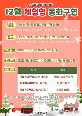 원주시 태장도서관, 12월 체험형 동화구연 운영