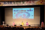 전국연합뉴스 김용태 기자 | 청양군은 30일 청양군 문화예술회관에서 10월 경로의 달을 맞아 대한노인회 청양군지회 주관으로 제29회 노인의 날 기념행사를 성대히 개최했다. 이날 행사에서는 노인복지 발전에 기여한 모범 어르신과 관계자 34명이 수상의 영예를 안았다. ▲국회의원 표창 4명 ▲도지사 표창 2명 ▲군수상 10명 ▲의장상 10명 ▲노인회 중앙회장상 2명 ▲노인회 연합회장상 1명 ▲청양군지회장상 5명 등이 전수됐다. 또한 청양에어로빅 동아리를 비롯한 6개 팀의 다채로운 축하 공연이 이어져 참석한 어르신들과 내빈들에게 즐거움과 감동을 선사했다. 김돈곤 군수는 “경로의 달을 맞아 함께 자리해주신 어르신들께 깊은 존경과 감사를 드린다”며 “앞으로도 어르신들이 행복하고 존경받는 지역사회를 만들기 위해 경로복지 증진에 최선을 다하겠다”고 밝혔다.