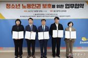 전국연합뉴스 기자 | 울산광역시교육청은 12일 오후 2시 접견실에서 관계 기관과 울산지역 청소년의 노동 권익 보호와 노동환경 개선을 위한 업무협약을 맺었다. 협약에는 (사)한국공인노무사회, 북구비정규직노동자지원센터, 울산광역시동구비정규직노동자지원센터, 울산근로자이음센터가 참여했다. 이번 협약은 청소년이 안전하고 존중받는 노동환경 속에서 성장할 수 있도록 지역사회와 함께 노동 권익 침해를 예방하고, 종합적인 지원 체계를 마련하고자 추진됐다. 이들 기관은 청소년 노동 문제 무료 상담, 상호 정보 공유와 협력 강화, 기관 간 관계망 활성화, 지역사회 연계 노동인권 사업 추진 등에서 긴밀히 협력하기로 했다. 울산교육청은 이번 협약으로 청소년들이 노동환경 문제에 대해 올바른 실천 의식을 기를 수 있도록 지원하는 한편, 실제 취업 현장에서 겪을 수 있는 권익 침해 상황에 효과적으로 대응할 수 있도록 돕는 데 중점을 둘 예정이다. 또한 학생인권지원센터와 협약 기관이 공동으로 노동 상담 업무를 맡아 학생 노동 문제 해결을 위한 체계적인 지원을 강화할 계획이다. 아울러 전문성이 강화된 맞