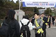 전국연합뉴스 기자 | 전라남도교육청이 2026학년도 대학수학능력시험일인 13일 시험장을 찾아 수험생을 응원했다. 김대중 교육감을 비롯한 도교육청 간부들은 이날 오전 75지구 제7시험장인 순천복성고등학교 교문 앞에서 시험을 치르기 위해 들어서는 수험생들을 반갑게 맞이하며 최선을 다해줄 것을 당부했다. 순천복성고 현장에는 김 교육감과 박철완 중등교육과장, 허동균 순천교육지원청교육장, 강종수 순천복성고 교장 등이 “파이팅”을 외치며 수능 대박을 기원했다. 이날 오전 황성환 부교육감도 교육청 간부들과 함께 문태고등학교를 방문해 수험생들을 격려했다. 김대중 교육감은 “모든 수험생 여러분, 정말 수고 많았다. 오늘은 여러분의 날이다”며 “결과에 대한 부담은 내려놓고, 그동안의 노력이 만들어준 자신감을 믿으며 차분히, 끝까지 최선을 다하길 바란다”고 말했다. 한편, 이날 목포·여수·순천·나주·광양·담양·해남 등 7개 시험지구, 총 46개 시험장에서는 1만 4,952명의 수험생이 2026학년도 대입 수능시험을 치른다.