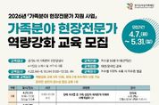 전국연합뉴스 조민준 기자 | 경기도여성가족재단은 4~6월 총 5회에 걸쳐 경기도 내 가족분야 전문상담사 250명을 대상으로 가족분야 현장전문가 역량강화 교육을 실시한다. 이번 교육은 가족분야 상담을 필요로 하는 경기도민에게 보다 전문적이고 다양한 영역의 상담서비스를 제공할 수 있도록, 현장에서 활동하는 상담사의 실천 역량을 강화하기 위해 마련됐다. 최근 가족분야 상담 현장에서 중요성이 커지고 있는 우울·자살 위험, 중독, 은둔·고립, 장애·입양 등 다양한 유형별 특성과 주요 이슈에 대한 이해 및 상담사례 등으로 현장에서 곧바로 적용할 수 있도록 프로그램을 구성했다. 모집대상은 경기도 내 가족분야 전문상담사이며, 교육은 차수별 50명 내외로 총 5차에 걸쳐 운영된다. 신청기간은 4월 7일부터 5월 31일까지이며, 재단 누리집을 통해 차수별로 선착순 모집한다. 김혜순 재단 대표이사는 “이번 역량강화교육은 도내에서 활동하는 가족분야 전문상담사들의 상담 현장 대응력과 전문성 제고를 위해 기획한 것”이라면서 “가족분야 현장전문가들과 함께 할 수 있는 사업을 마련하겠다”고 말했다.