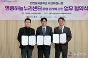 전국연합뉴스 박우배 기자 | 영종구 출범 원년을 맞아 올해 새롭게 개관한 ‘영종하늘누리센터’의 안정적·체계적 운영을 위해 인천시 중구가 인천시 교육청, 운서중학교와 손을 맞잡았다. 김정헌 인천 중구청장과 도성훈 인천시 교육감, 김성오 운서중학교장은 10일 오후 영종하늘누리센터 하늘배움터에서 이러한 내용의 ‘인천운서중 학교복합시설(영종하늘누리센터)의 운영과 관리에 관한 업무 실시협약’에 서명했다. ‘영종하늘누리센터’는 인천 중구가 운서중학교 부지 내 일부를 무상으로 제공받아 하늘초롱길 69 일원에 지하 1층, 지상 4층 연면적 5,635㎡ 규모로 건립한 ‘학교복합시설’이다. 지난 2024년 6월 첫 삽을 떠 올해 1월 건립 공사를 모두 마쳤으며, 3월 준공식을 개최한 후 현재는 운영 본격화에 행정력을 집중하고 있다. 특히 다함께돌봄센터 7호점(거점형), 육아종합지원센터, 가족센터, 영종하늘누리 작은도서관이 지난 2월부터 입주해 다양한 복지·문화 서비스를 구민들에게 제공하고 있다. 이번 협약은 지난 2021년 영종하늘누리센터 건립을 위해 체결한 기본 업무협약의 내용을 한층 더 구체화함으로