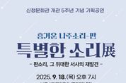 전국연합뉴스 김철환 기자 | 전라남도 나주시가 나주신청문화관 개관 5주년을 맞아 특별 무대를 진행한다. 4일 나주시에 따르면 오는 18일 오후 7시 기획공연 ‘흥겨운 나주소리-판 특별한 소리展’을 열어 소리의 기원과 전승의 의미를 되새기는 특별 공연을 개최한다. 이번 공연은 판소리의 본향 나주에서 지역 예인들의 넋을 기리고 위로하는 ‘나주신청 선생안제’를 재현하며 판소리의 시작부터 일제강점기를 거쳐 현재에 이르기까지의 변화상을 무대에 담는다. 출연진으로는 국가무형유산 판소리 예능 보유자 윤진철, 판소리고법 전승 교육사 정회천, 승무 전승 교육사 김묘선이 참여하며 나주시립국악단이 함께 무대를 꾸민다. 같은 날 오후 3시에는 나주문화재단 주최로 판소리 포럼이 개최돼 학술적 재조명과 공연의 시너지가 기대된다. 시는 지난 5년간 대표 공연 ‘흥겨운 나주소리-판’을 통해 명창 공연, 나주 삼현육각, 나주민요 등 다양한 프로그램을 선보이며 나주만의 소리 문화를 계승하고 발전시켜 왔다. 지난 5월에는 전남대학교 예술대학과 업무협약을 체결해 청년 예술인과 함께 전통문화의 미래를 여는 협력