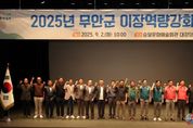 전국연합뉴스 김철환 기자 | 무안군은 지난 2일 승달문화예술회관에서 무안군 9개 읍면 이장 432명을 대상으로'2025년 이장 직무능력 강화 워크숍'을 개최했다. 이번 워크숍은 이장 간 상호 교류와 화합의 장을 제공함으로써 대민행정의 최일선에서 주민과 행정 간 가교역할을 수행하는 이장들의 역량을 강화하고 행정업무에 대한 이해도와 대응 능력을 높이는 한편, 마을공동체 리더로서의 소통 능력과 갈등관리 역량을 높이기 위해 마련됐다. 이날 행사에서는 군정 시책추진과 지역사회 발전을 위해 헌신한 이장들의 공로를 격려했으며, 표창은 군수 표창 11명, 국회의원 표창 10명, 군의회의장 표창 11명, 전라남도의회의장 표창 5명, 무안경찰서장 표창 10명, 전국이통장연합회 전남도지부장 표창 3명 등 총 50명이 수상했다. 이어진 직무교육에서는 리더십 전문강사인 조정호 강사가 '이장 리더십과 변화 혁신' 이라는 주제로 강의식 교육이 아닌 참여형 교육 방식으로 진행되어 이장들 간의 긍정적인 상호작용과 자발적인 관심을 이끌어내 교육 효과를 더욱 높였다. 김산 무안군수는 “이장님들은 행정의 중요한 동반자로서 주민 소통과