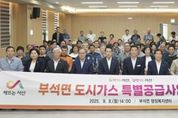 전국연합뉴스 김용태 기자 | 충남 서산시는 지난 8일 부석면 행정복지센터 회의실에서 부석면 도시가스 특별 공급 사업 착공식을 개최했다고 밝혔다. 이날 착공식에는 이완섭 서산시장, 부석면 주민 등 40여 명이 참석했으며, 도시가스 공급을 위한 사업 착공을 축하하는 시간을 가졌다. 해당 사업은 인지면 일원부터 부석면 행정복지센터 일원까지 약 10㎞의 도시가스 배관을 연결하는 사업이다. 총사업비 60억 원이 2025년부터 2026년까지 투입되며, 사업이 완료되면 부석면 120여 세대가 도시가스를 사용할 수 있게 된다. 시는 에너지 소외지역이었던 부석면 일원 주민의 난방비 절감, 안정적인 에너지 사용 등을 통해 주거환경의 개선과 생활 복지 향상이 이뤄질 것으로 전망했다. 특히, 이번 특별 공급 사업은 운산면에 이어 두 번째로, 도시와 농촌 간 생활 격차를 줄이고 에너지 복지 사각지대 해소에 이바지할 것으로 기대된다. 이완섭 서산시장은 “이번 사업이 부석면 주민들의 생활 편의와 안전에 보탬이 되길 바란다”라며 “앞으로도 시민의 에너지 복지 증진을 위해 다양한 시책을 추진해 나가겠다”