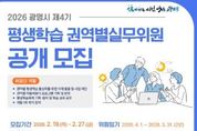 전국연합뉴스 조민준 기자 | 광명시가 시민 주도의 생활권 중심 평생학습 정책을 강화하기 위해 ‘제4기 평생학습 권역별실무위원회’ 신규 위원 100명을 공개 모집한다. 평생학습 권역별실무위원회는 마을 단위의 학습 의제를 발굴하고 현장 맞춤형 프로그램을 기획·운영하는 민관 협력 기구다. 위원회는 ▲으뜸터(광명1~3동) ▲다울마을(광명4~7동) ▲철산지기(철산1~4동) ▲하안처럼(하안1~4동) ▲예터지기(소하·일직·학온동) 등 5개 권역으로 구성된다. 지원 자격은 광명시에 주민등록이 되어 있는 만 19세 이상 시민이라면 누구나 가능하며, 해당 권역 소재 사업장이나 기관·단체 근무자도 신청할 수 있다. 선발된 위원은 4월 1일부터 2년간 ▲마을 평생학습 의제 발굴 및 사업 제안 ▲마을배움터 프로그램 기획 및 운영 ▲평생학습축제 기획·참여 등 지역 학습 생태계 조성을 위한 핵심 역할을 수행하게 된다. 모집 기간은 오는 2월 19일부터 2월 27일까지다. 접수는 이메일 또는 광명시 평생학습원 방문을 통해 가능하다. 시는 3월 중 서류심사와 면접을 거쳐 최종 위원을 선발하고, 3월 말