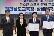 전국연합뉴스 기자 | 전라남도교육청은 14일 상해한국상회와 ‘청소년 스포츠·문화 교류를 위한 업무협약(MOU)’을 체결했다. 이번 협약은 전남 학생들과 상해 지역 한국 청소년들이 스포츠를 매개로 협동심과 리더십을 기르고, 문화·역사 체험을 통해 세계시민 의식과 정체성을 키우기 위해 추진됐다. 양 기관은 앞으로 ▲ 청소년 스포츠 교류전 참가 협력 ▲ 현지 역사·문화 체험 프로그램 지원 ▲ 글로컬 인재 양성을 위한 국제교류 운영 ▲ 교육·체육 분야 행사 및 정보 공유 등을 추진할 예정이다. 특히, 상해는 일제강점기 대한민국 임시정부가 수립된 역사적인 도시로, 청소년들이 우리 민족의 독립정신과 애국심을 배울 수 있어 교육적으로 의미가 깊은 곳이다. 상해한국상회는 풍부한 경험과 인적·사회적 자산을 바탕으로 ▲ 청소년 교육 프로그램에 대한 전략적 투자 ▲ 한중 양국의 한국 학생 간의 지속 가능한 교류 ▲ 지역사회 네트워크를 활용한 교육 콘텐츠 재생산 등 교육 협력의 새로운 모델을 제시할 예정이다. 전남교육청은 전남의 학생들이 세계와 소통하며 미래를 준비할 수 있도록 교육 외교의 장을 넓히는 데