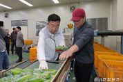 전국연합뉴스 이동수 기자 | 이범석 청주시장은 20일 흥덕구 오송읍에 위치한 청원생명 애호박 공동선별장을 방문해 공선 및 유통 현황을 점검하고 관계자와 지역 농민들을 격려했다. 청원생명 애호박은 옥산면과 오송읍 일대 83농가에서 재배되고 있으며, 총 98ha 면적에서 연간 약 1만1,000톤이 생산되는 지역 대표 농특산물이다. 올해 예상 매출은 200억원을 넘어설 것으로 전망된다. 특히 4월부터 여름까지 이어지는 집중 출하 시기에는 전국 유통 물량의 약 30%를 차지하며, 서울 등 주요 대형 유통매장에서 활발히 판매되는 등 높은 시장 점유율을 보이고 있다. 또한 농산물우수관리인증(GAP)을 획득해 품질과 안전성을 인정받으며 소비자들로부터 큰 호응을 얻고 있다. 시는 청원생명 애호박의 품질 향상과 브랜드 경쟁력 강화를 위해 생육 봉지 및 포장재 제작 지원, 고품질 생산을 위한 자재 지원 등 다양한 정책을 추진하고 있다. 아울러 생산농가의 판로 확대를 위한 홍보 및 판촉행사를 병행하며 행·재정적 지원을 강화하고 있다. 이범석 시장은 “생산부터 유통까지 맞춤형 지원과 체계적인 관