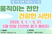 전국연합뉴스 김대환 기자 | 천안시 서북구보건소는 5월 한 달간 ‘움직이는 천안, 건강한 시민!’ 걷기 챌린지를 운영한다고 20일 밝혔다. 이번 챌린지는 걷기를 통해 시민들의 건강한 생활습관 형성을 돕기 위해 마련됐다. 하루 약 8,000보 걷기를 기준으로 한 달간 총 25만 보 달성을 목표로 진행되며, 목표 걸음 수를 달성한 참여자 중 추첨을 통해 300명을 선정해 5,000원~ 1만 원 상당의 모바일 상품권을 제공할 예정이다. 챌린지는 천안시민 누구나 참여할 수 있으며, ‘걷쥬 시즌2’ 앱을 통해 신청하면 된다. 이와 함께 5월 17일 세계 고혈압의 날을 기념해 ‘혈압수치 알기 캠페인’도 운영한다. 목표 걸음 수를 달성한 참여자 중 혈압 측정 사진을 촬영해 커뮤니티 게시판에 올리면 추첨을 통해 10명에게 추가로 상품을 제공할 계획이다. 이현기 서북구보건소장은 “걷기는 누구나 일상에서 쉽게 실천할 수 있는 대표적인 신체활동”이라며 “이번 챌린지를 통해 규칙적인 걷기습관을 형성하고, 심뇌혈관질환 예방의 중요성에 대한 인식이 높아지길 바란다”고 말했다.